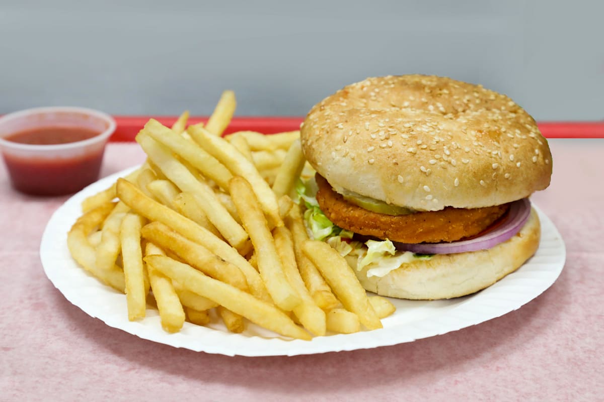 Boneless skinless chicken sandwich. Fish Sandwich Burger with French Fries 775. Come stop by and visit us.